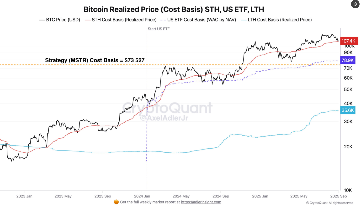 (위) 주체별 비트코인 실현가격 (자료: CryptoQuant, @AxelAdlerJr)